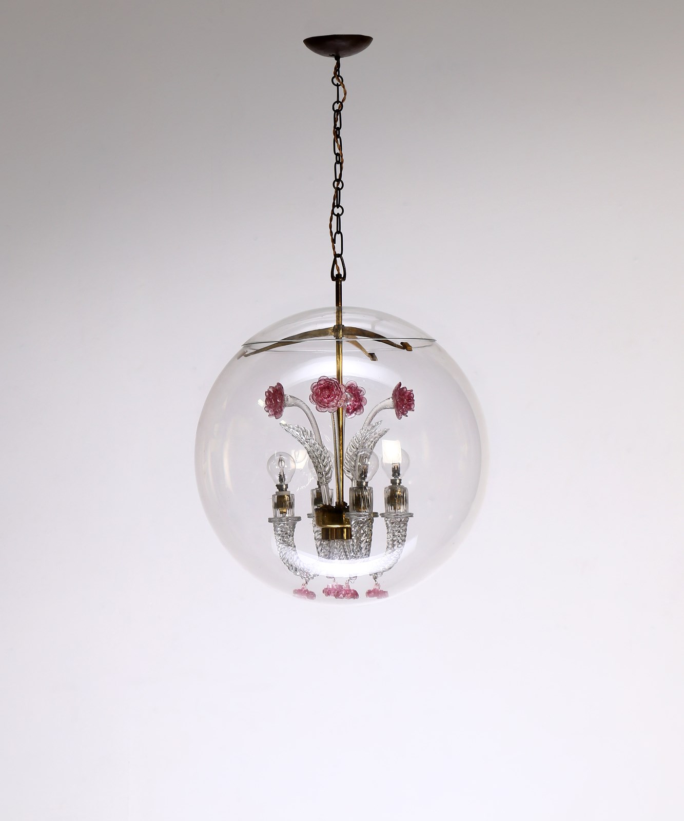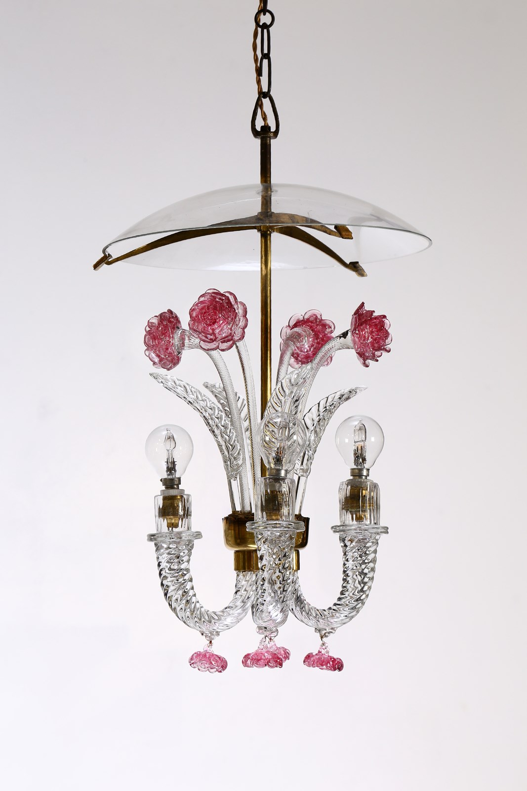 POLI FLAVIO (1900 - 1984) Lampada a sospensione, produzione Seguso, 1930. Vetro di Murano e ottone.. Cm 45,00 x 80,00 x 45,00.
