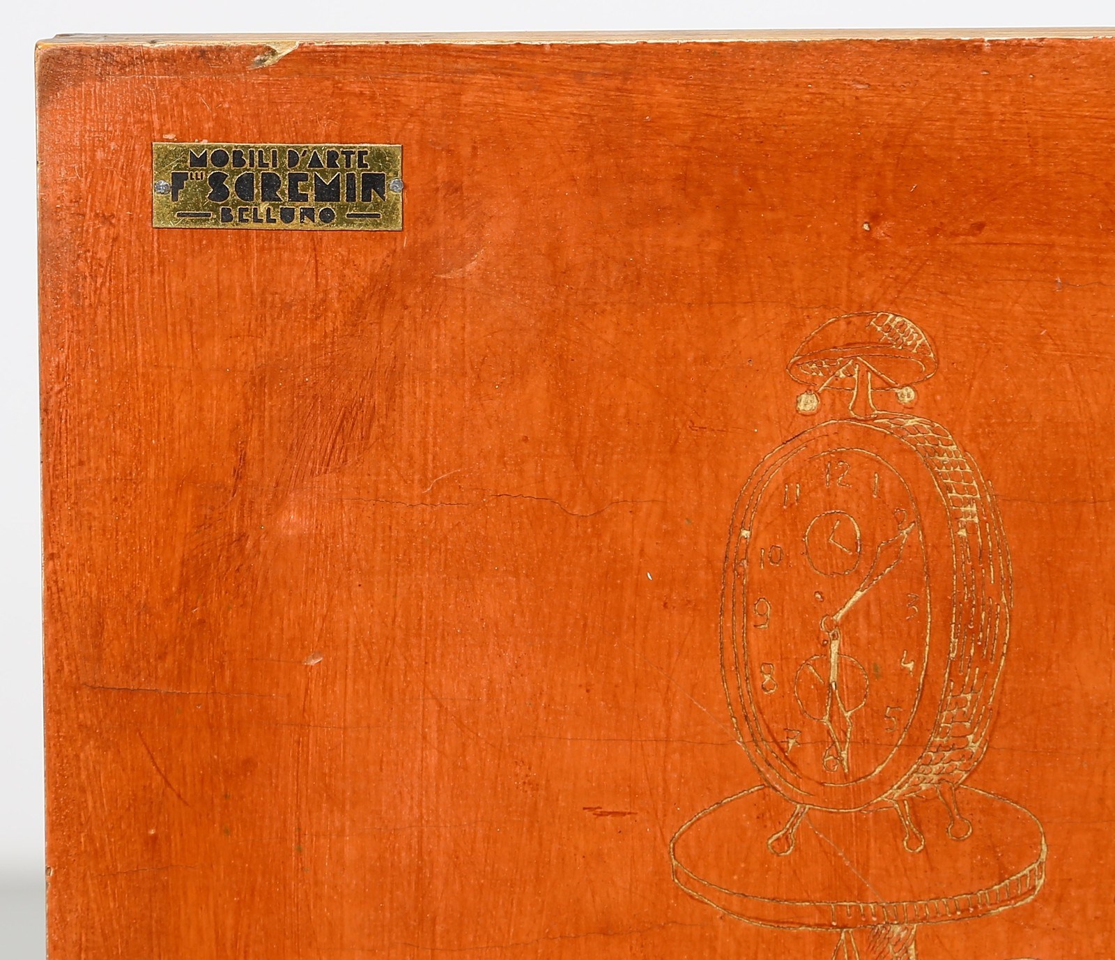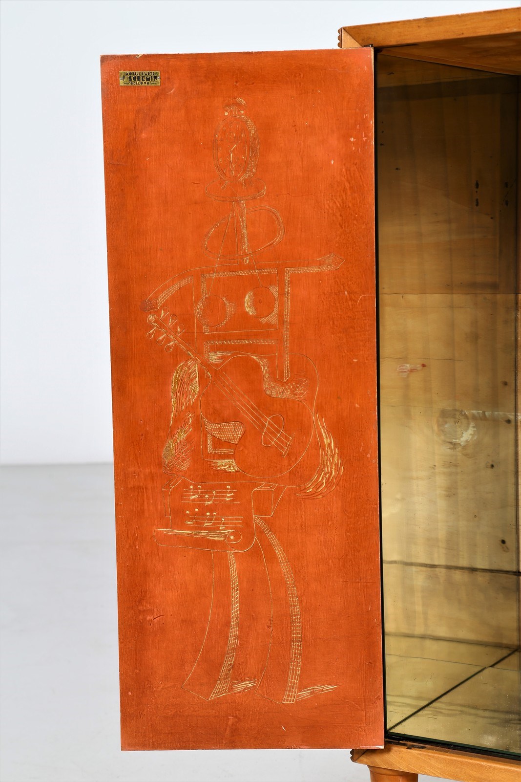 SCREMIN LUIGI (1896 - 1983) - Cabinet disegnata da cartone preparatorio di Marino Meo, produzione Fratelli Scremin, Belluno anni '40.