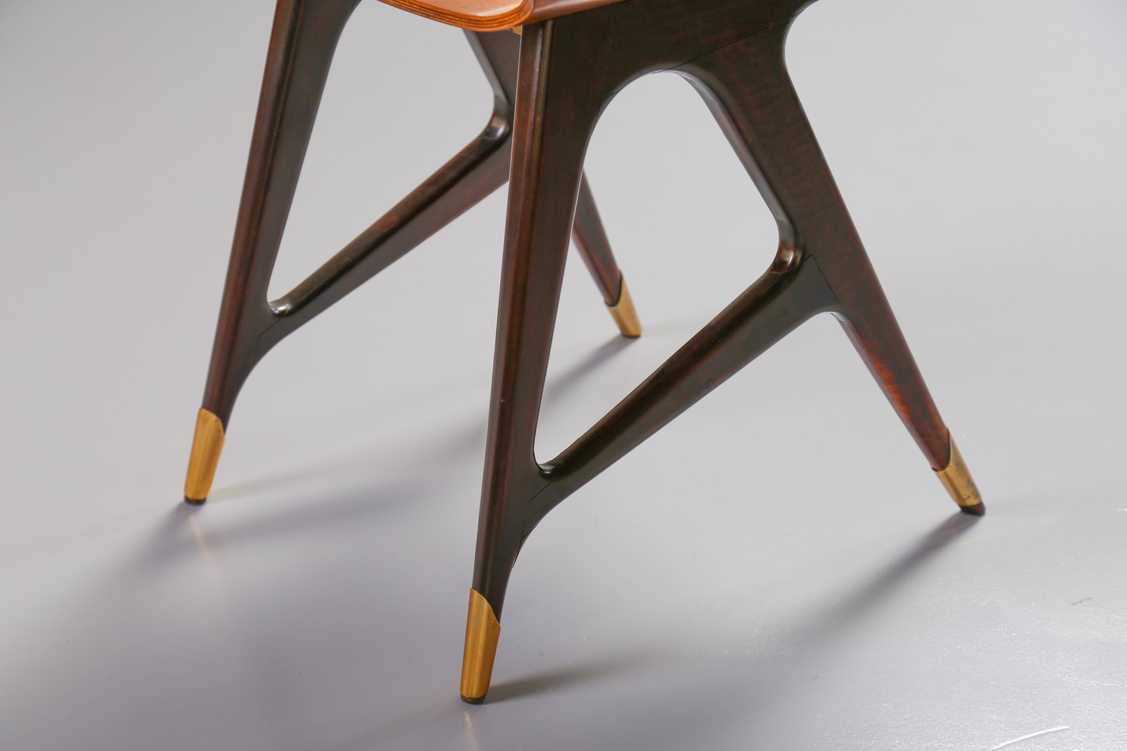 . Legno di noce e ottone.. Cm 41,00 x 87,00 x 59,00. Etichetta della manifattura.