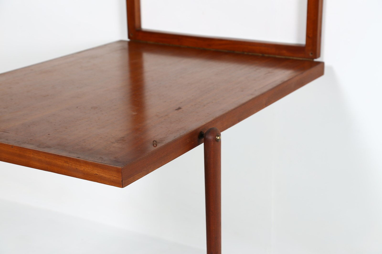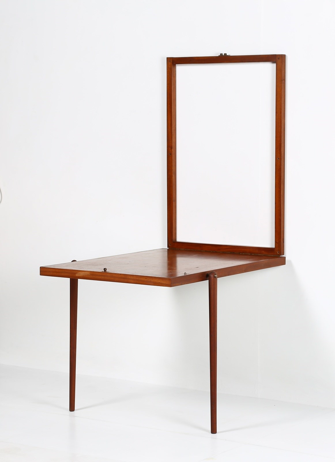 JORIO PIER CARLO (1927 - 2016) (attribuito)Tavolo apribile a parete con immagine di montagna, 1950. . Legno di mogano.. Cm 79,00 x 184,00 x 82,00. Pier Carlo Jorio allievo e collaboratore di Carlo Mollino, è stato esponente della scuola di Torino nei primi anni 50.