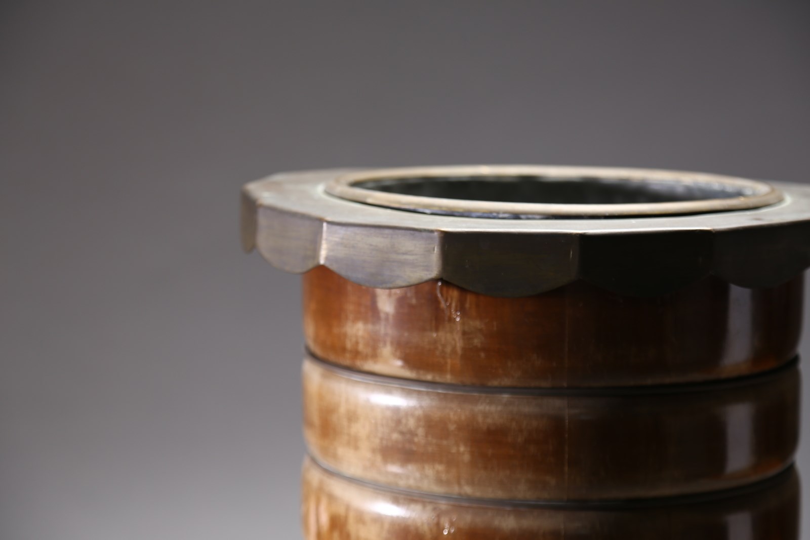 LAPADULA ERNESTO (1902 - 1968) (attribuito) Fioriera , produzione Scremin Belluno, anni '30. Legno di noce e ottone.. Cm 40,00 x 50,00 x 40,00.
