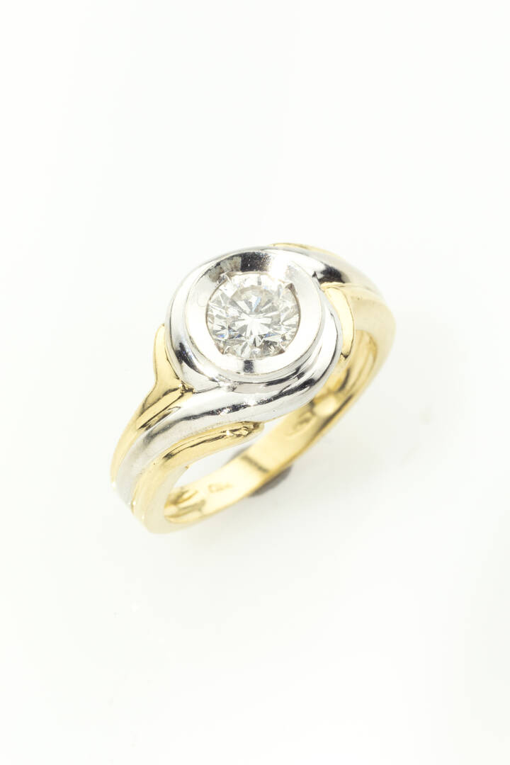 in oro giallo e bianco con diamante solitario taglio brillante di ct 0,60 ca