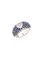 in oro bianco, sommità bombata, con al centro un diamante taglio a cuore di ct 0,50 ca e pavé di zaffiri taglio rotondo per totali ct 2,50 ca