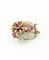 in oro a bassa caratura, a forma di fiore, con perline a decoro e gemme rosse sintetiche