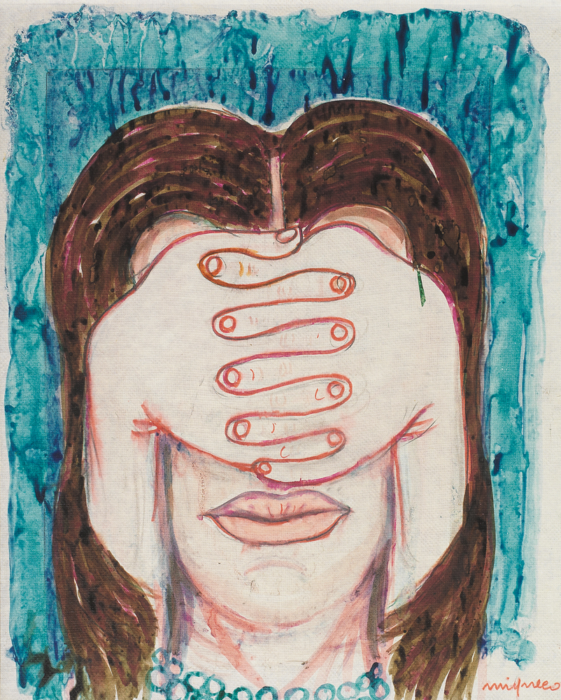 GIUSEPPE MIGNECO Messina 09/02/1908 - Milano 28/02/1997 Figura, anni '80 china colorata su carta intelata cm. 58,2x46,7; firma in basso a destra, opera registrata presso l'Archivio Giuseppe Migneco come da dichiarazione su foto.