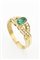 in oro giallo, con al centro smeraldo taglio ovale di ct 0,80 ca ed ai lati intreccio in diamanti taglio brillante per totali ct 0,15 ca