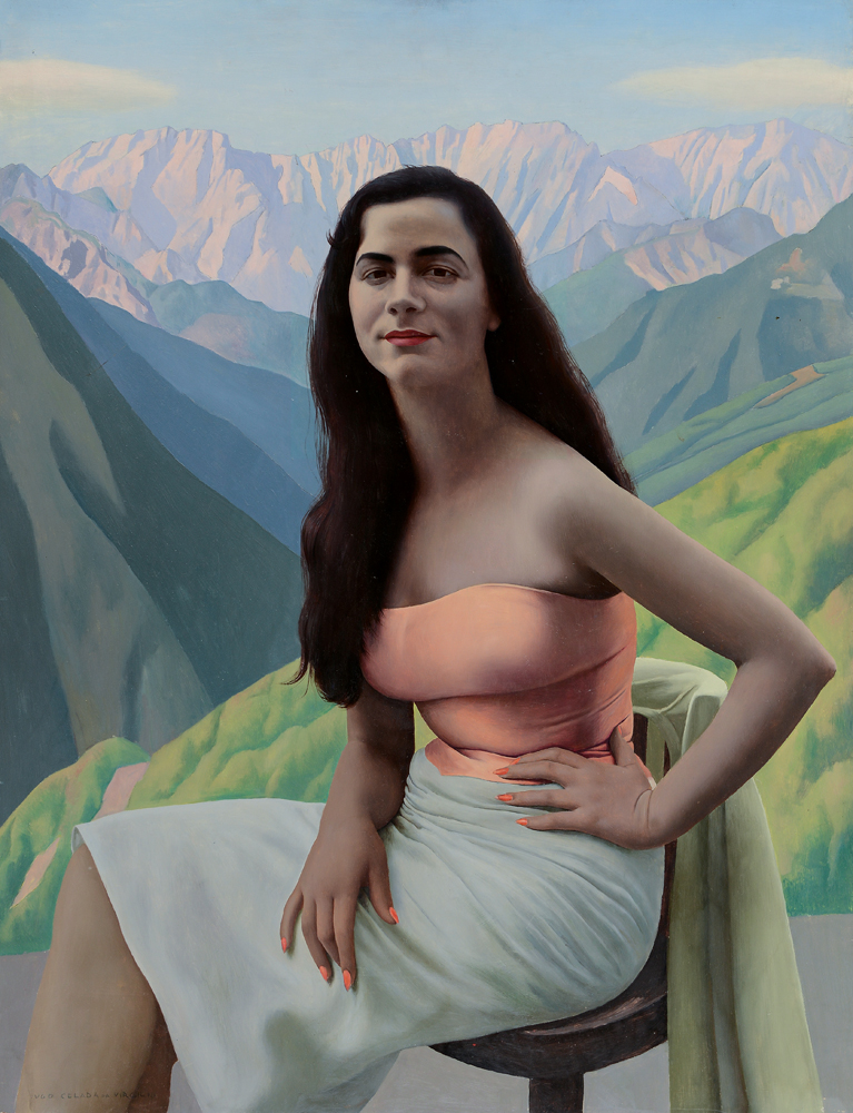 UGO CELADA Cerese di Virgilio (Mn) 25/05/1895 - Varese 09/08/1995  Ritratto di giovane di S. Carlo con lo sfondo delle Apuane olio su tavola cm. 86x65, firma in basso a sinistra.
