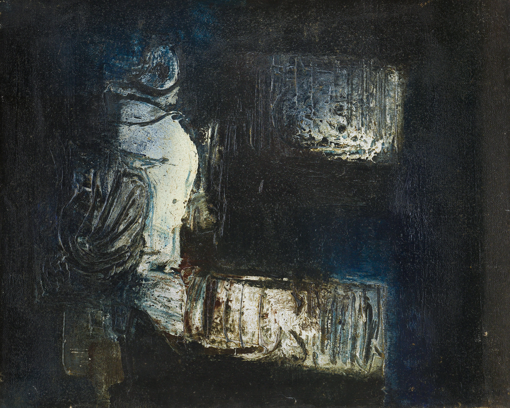 MARIO BIONDA Torino 1913 - Penango (AT) 1985  Personaggio marino, 1963 olio su tela cm. 65x81, firma, titolo, anno, etichetta e timbri della Galleria Michaud (FI) al retro, certificato di provenienza della Galleria Allegrini Arte Contemporanea (BS) allegato.