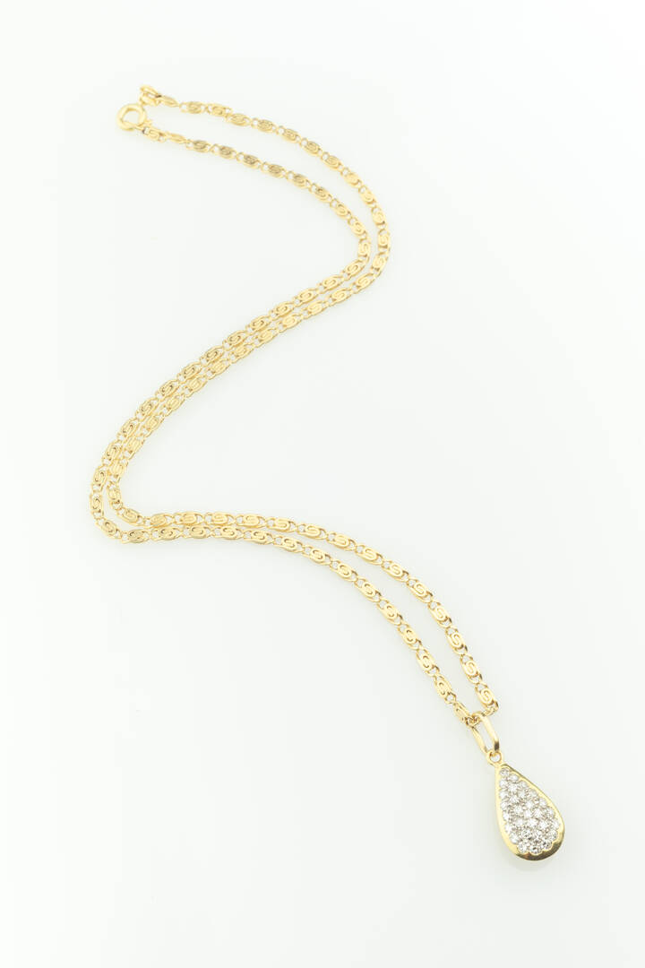 in oro giallo, a forma di goccia con pavè di diamanti taglio 8/8 per totali ct 0,50 ca