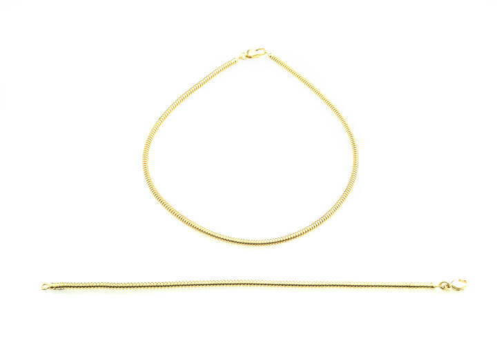 composta da girocollo e bracciale in oro giallo, lavorati a maglia tubogas