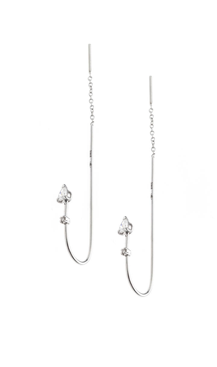 in oro bianco, ad amo, con diamanti taglio a goccia per totali ct 0,30 ca, probabile colore G-H, purezza IF-VVS