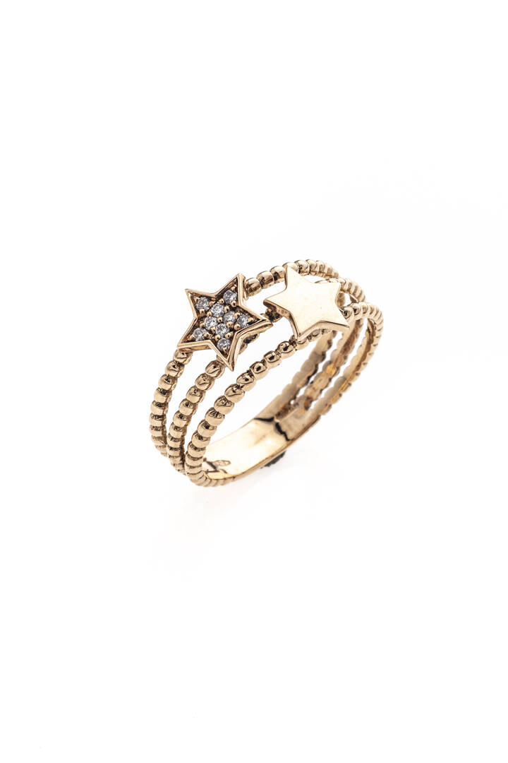 in oro rosa, sommità a fasce lavorate a corda, con due stelle stilizzate di cui una con diamanti taglio brillante per totali ct 0,05 ca