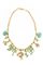Girocollo in oro giallo, firmato "Gabriella Rivalta"; con rose smaltate, dischi e sfere fesonate di smeraldi dal diam di mm 16,5 ca e 3 ca