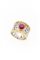 in oro giallo e bianco, a fascia lavorata, con al centro rubino taglio ovale di ct 1,63 ca e diamanti taglio brillante per totali ct 0,54 ca
