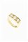 in oro giallo, struttura geometrica, sommità con tre diamanti taglio brillante per totali ct 0,75 ca, probabile colore G-H, purezza IF-VVS