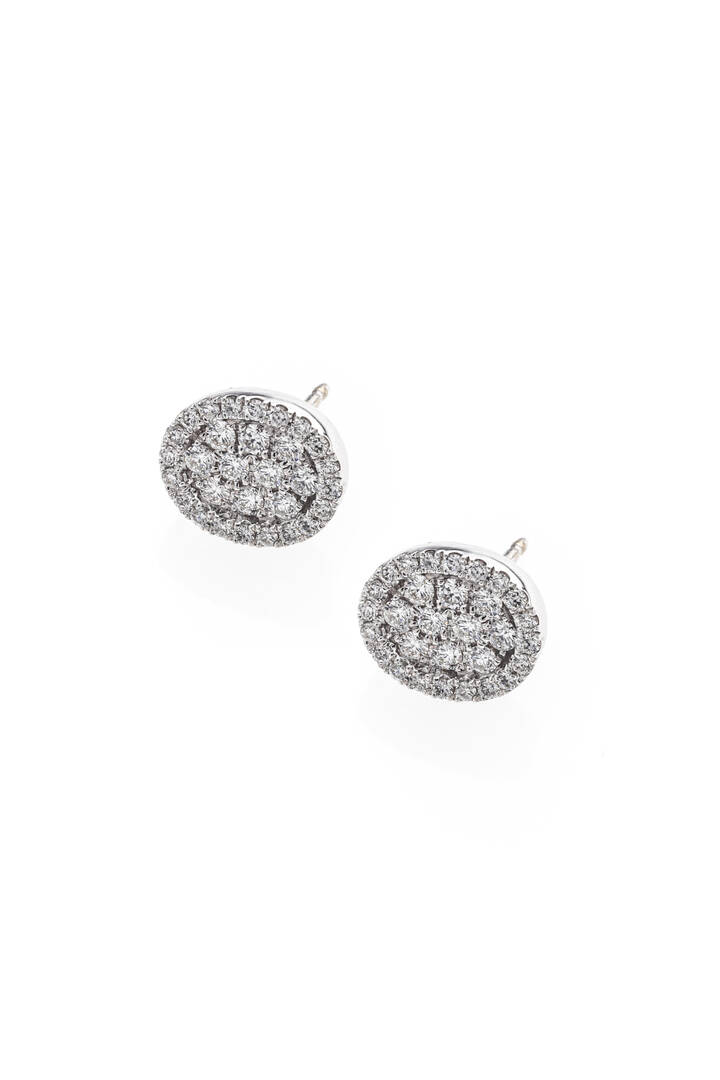 in oro bianco, a lobo, di forma ovale, con pavé di diamanti taglio brillante per totali ct 0,83 ca, probabile colore G-H, purezza IF-VVS