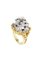 L'anello è inserito in una struttura lavorata a corteccia in oro bianco, dalla quale si può staccare
