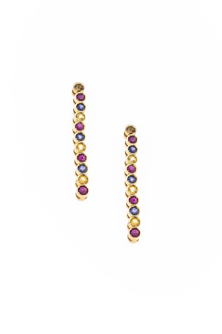 pendenti, in oro giallo, modello tennis, con zaffiri gialli e blu