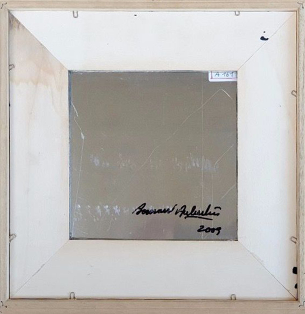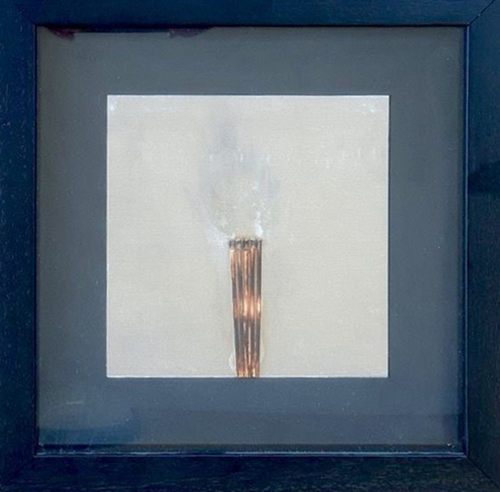 Fiammiferi bruciati su metallo 20x20 cm; firma e anno al retro.