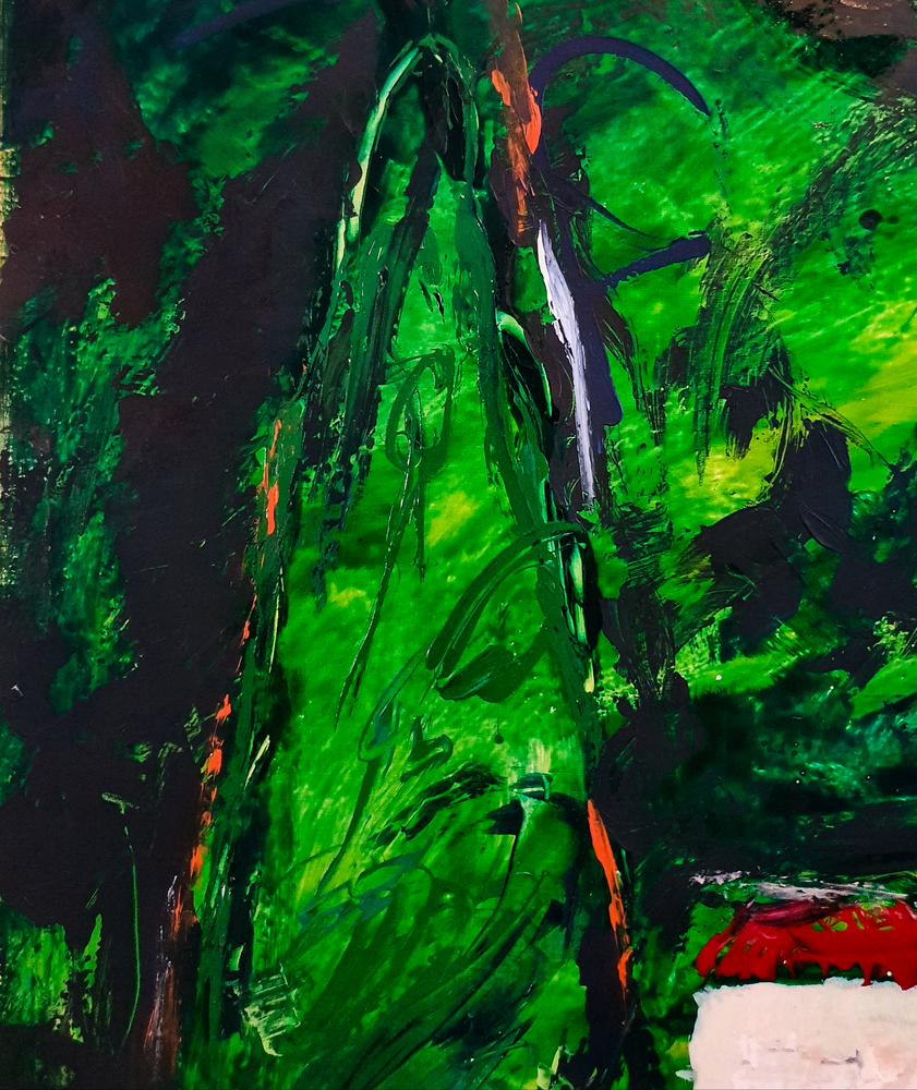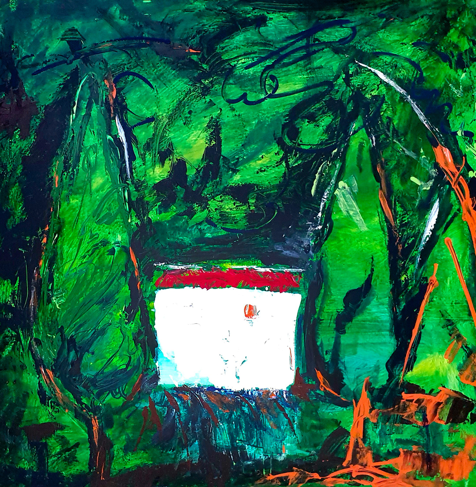 Smalto e acrilico su tela; 100x100 cm; firma e titolo al retro.