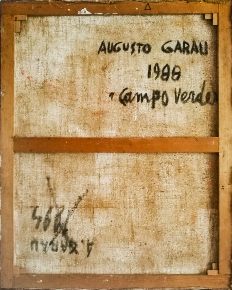 Olio su tela 81x100 cm; firma in basso a destra; firma, titolo e anno al retro.