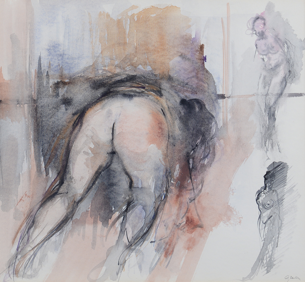 GIUSEPPE AJMONE Carpignano Sesia 17/02/1923 - Romagnano Sesia 07/04/2005 Nudo tecnica mista su carta cm. 33x35, firma in basso a destra.