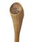 Lampada da terra con struttura in vimini, dalla particolare forma allungata.