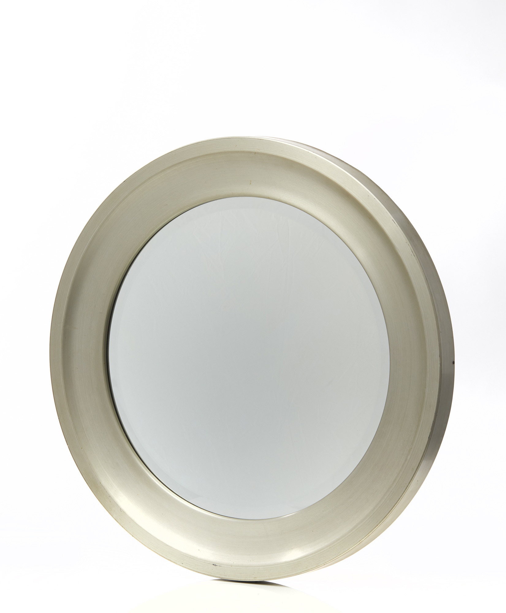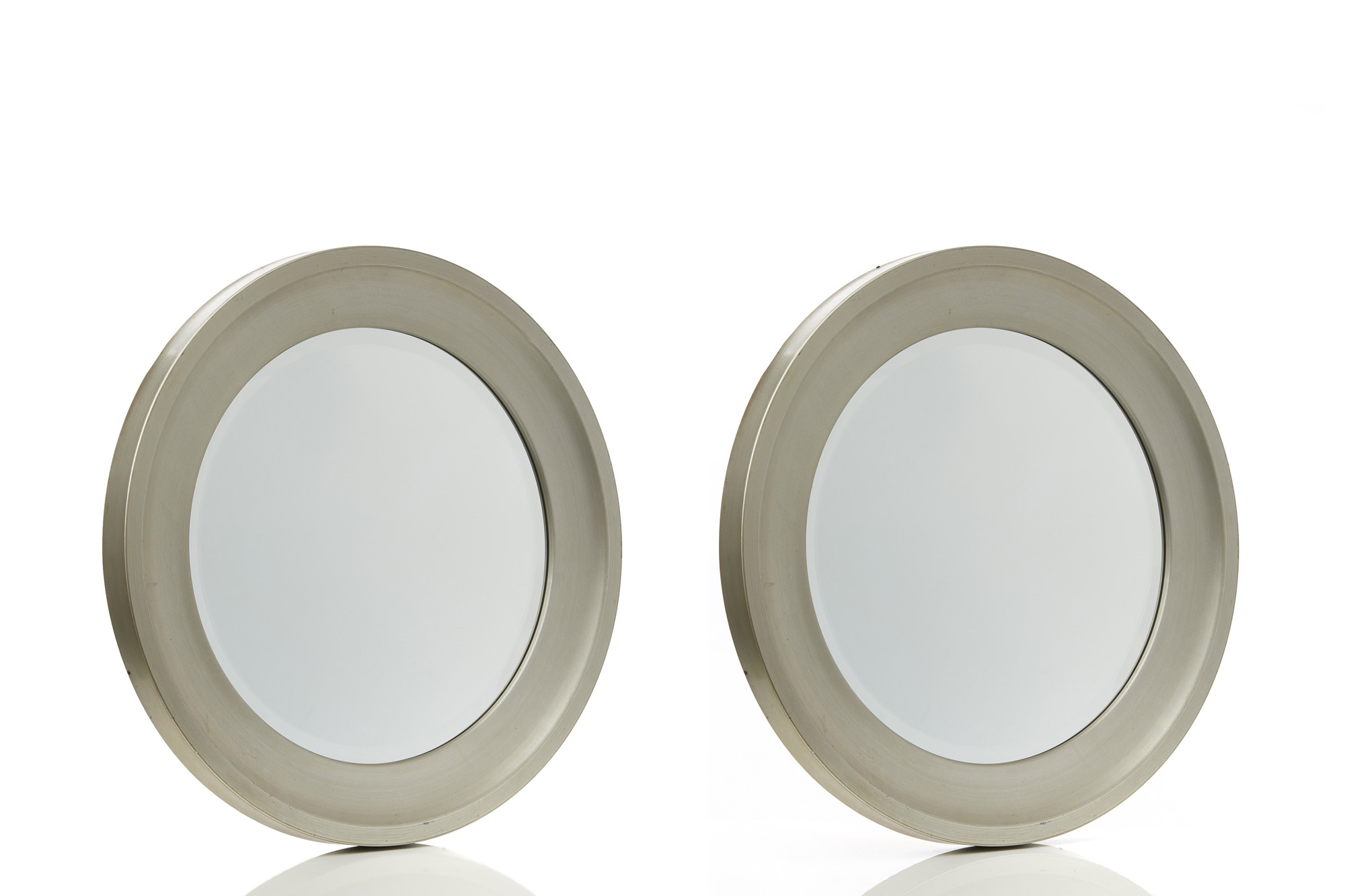 Coppia di specchi, di forma rotonda con cornice in alluminio.