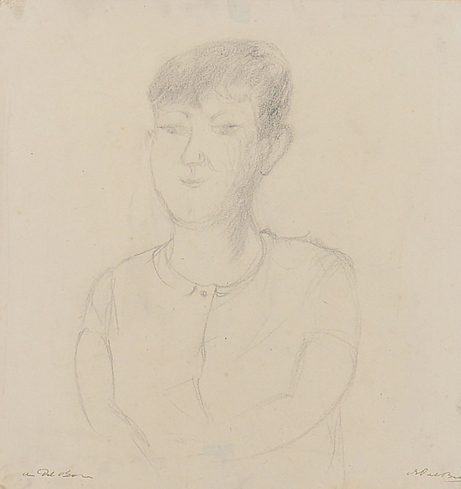 ANGELO DEL BON Milano 12/04/1898 - Desio (Mi) 02/04/1952 Germano, 1944 matita su carta applicata su cartone cm. 33x31, firma in basso a sinistra, etichetta della Galleria Annunciata (MI) al retro.