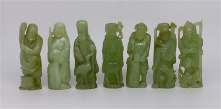 Sette figure di saggi in giada verde - Seven figures of wise men in green jade