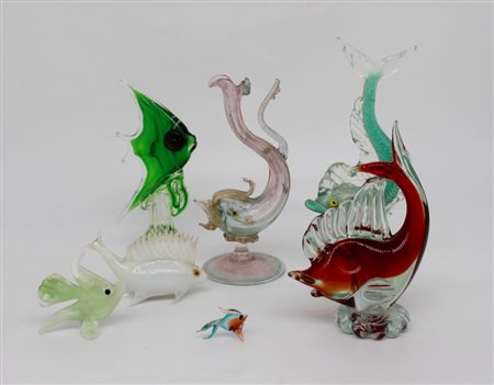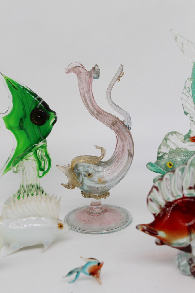 Sette pesci in vetro colorato - Seven fish in colored glass