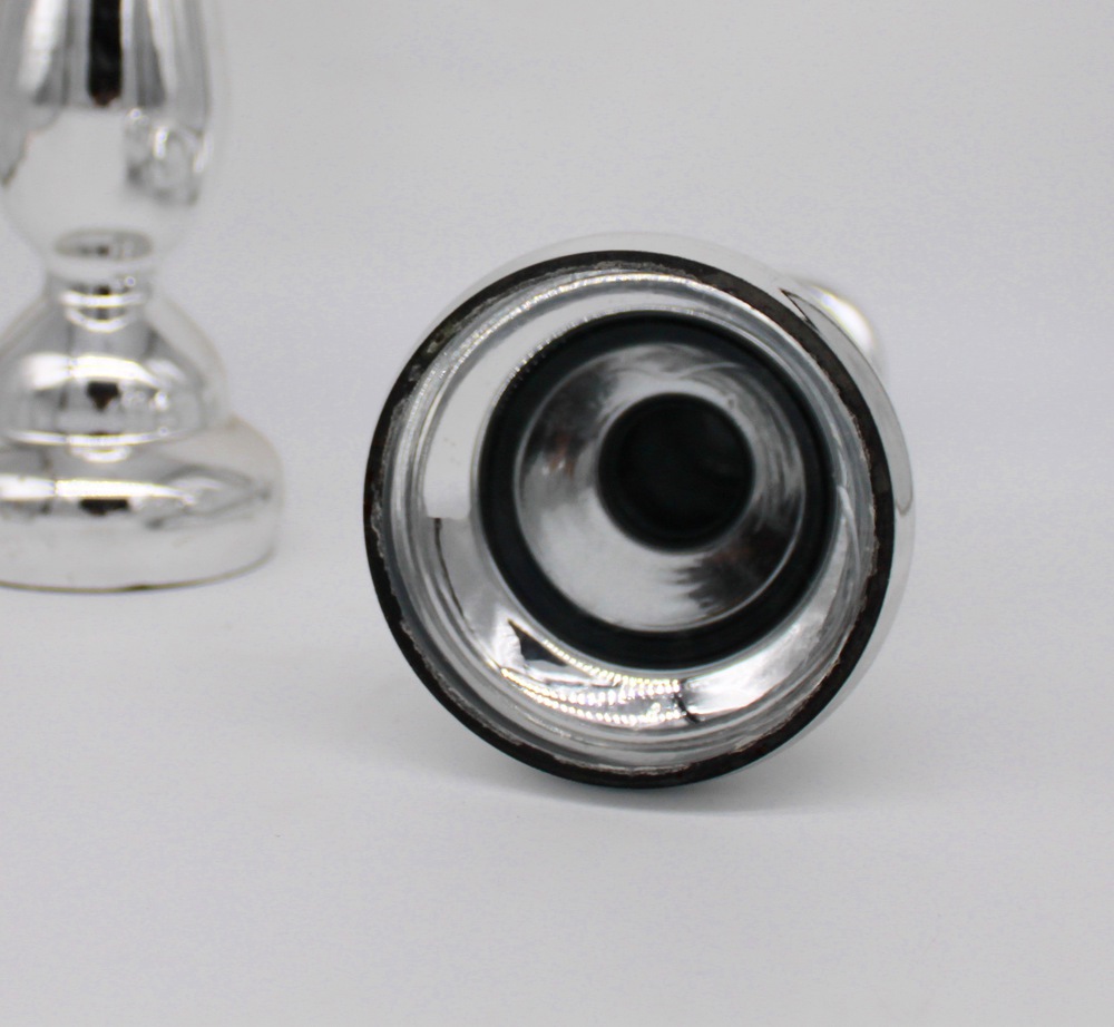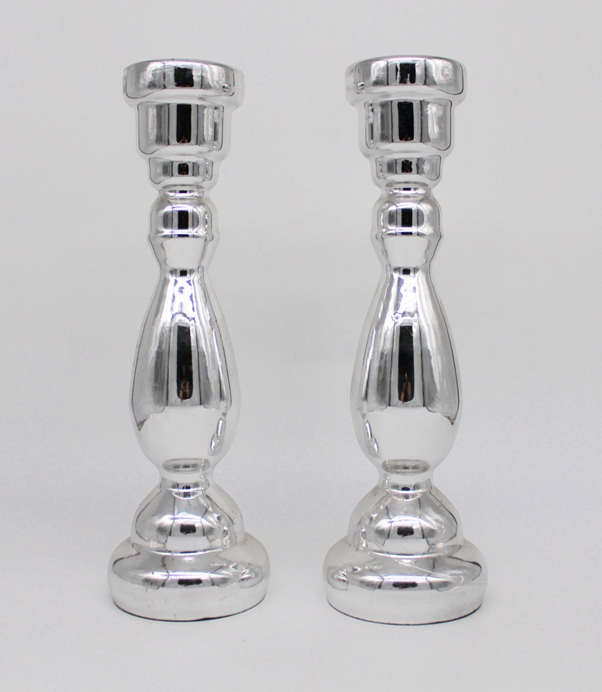 Due candelieri in vetro argentato - A pair of silver glass candlesticks