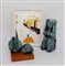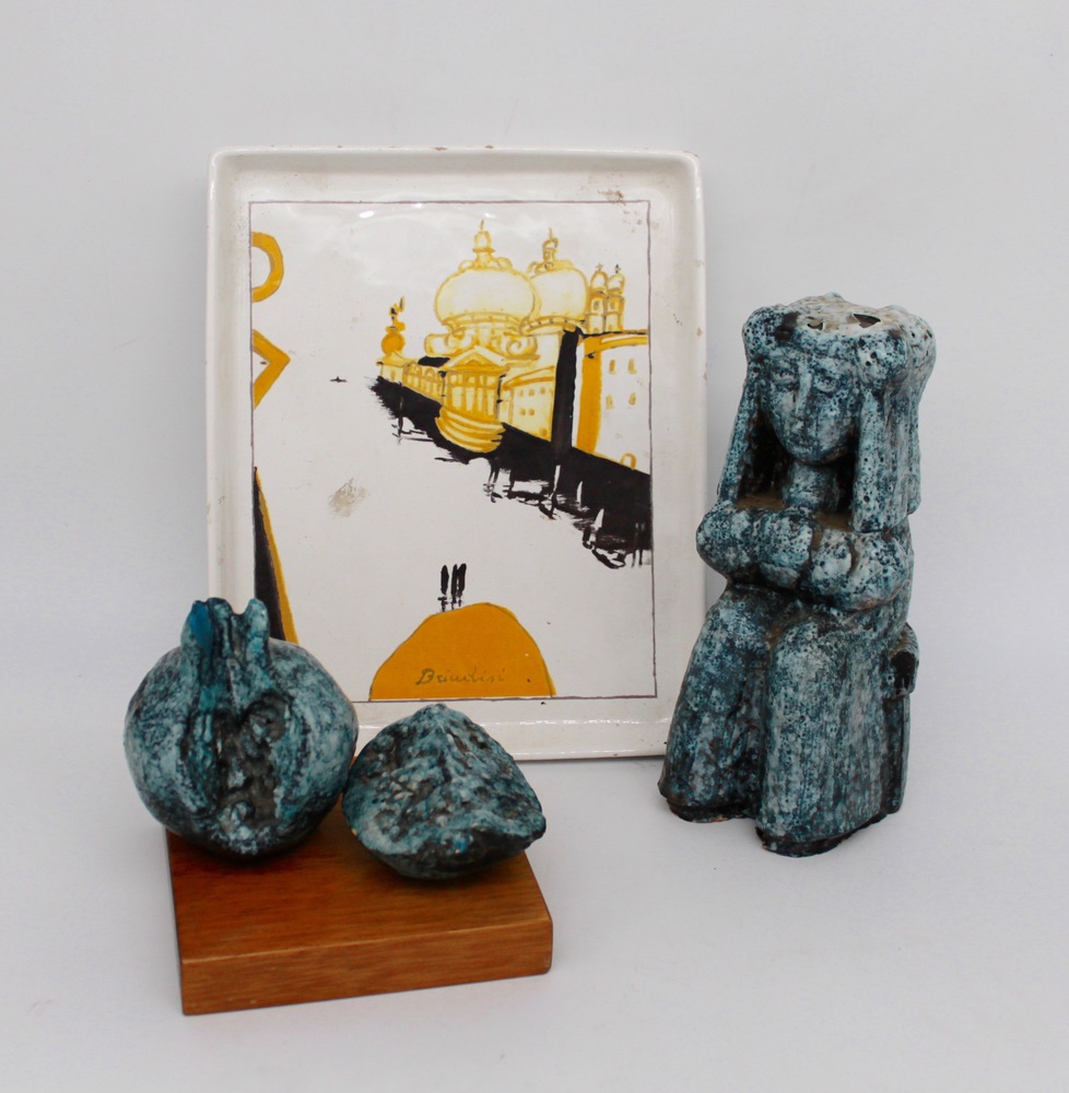 Due sculture astratte e un vassoio in ceramica - Two abstract sculptures and a ceramic tray.