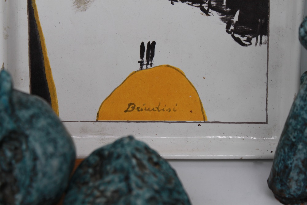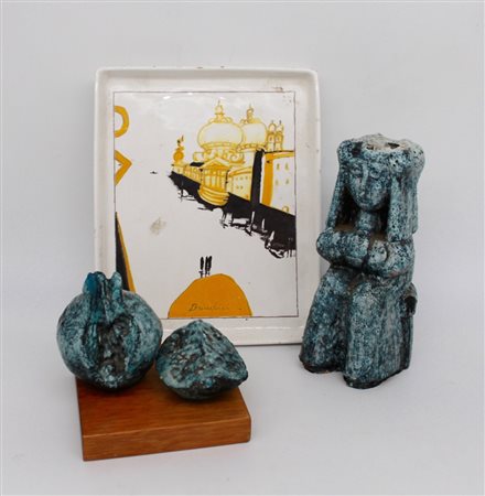 Due sculture astratte e un vassoio in ceramica - Two abstract sculptures and a ceramic tray