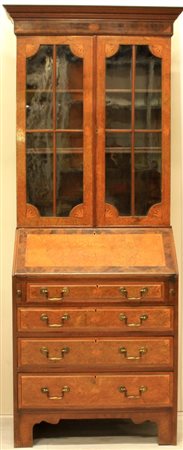 Piccolo bureau bookcase in radica - A small walnut bureau bookcase