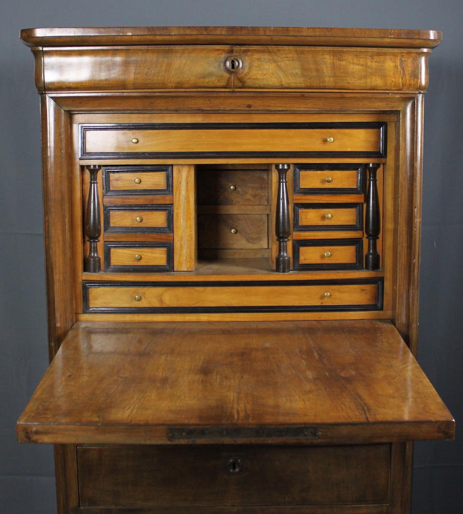 Secretaire in noce con interno in acero e parti ebanizzate, prima metÓ XIX secolo