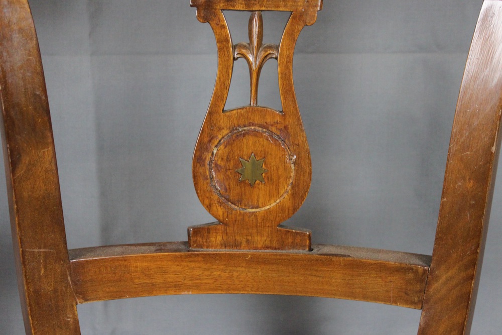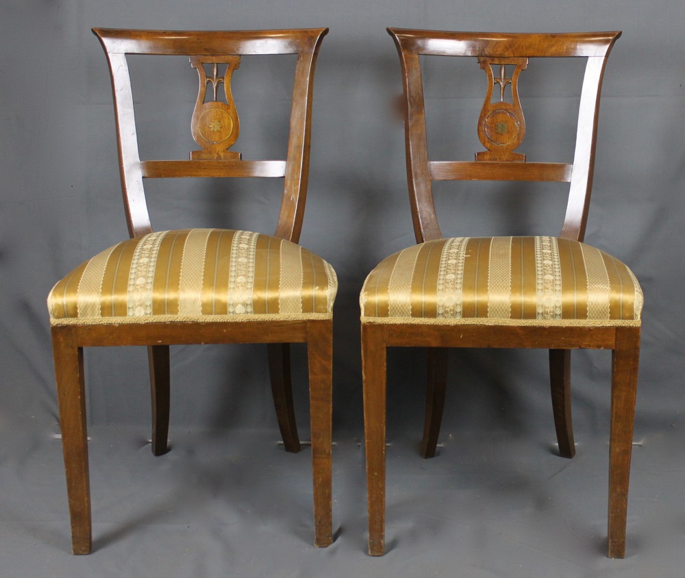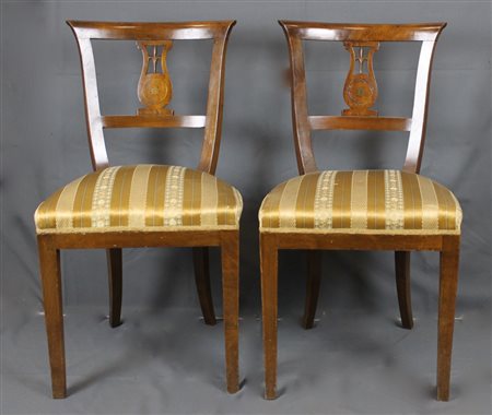 Coppia di sedie in noce con schienale a lira , XIX secolo.