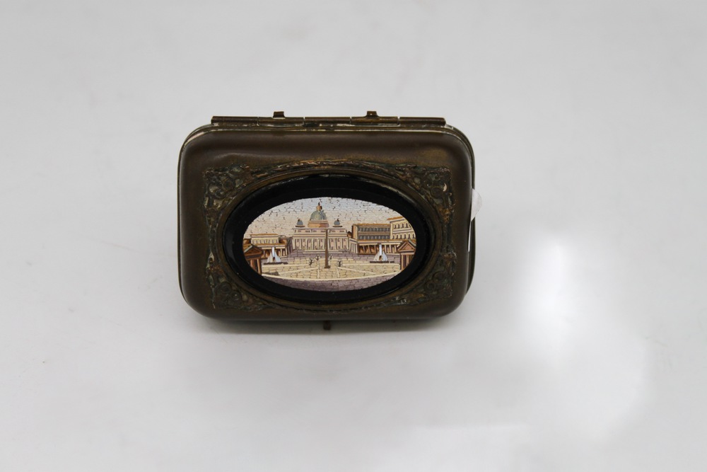 Scatoletta in metallo con micromosaico - Metal box with micromosaic