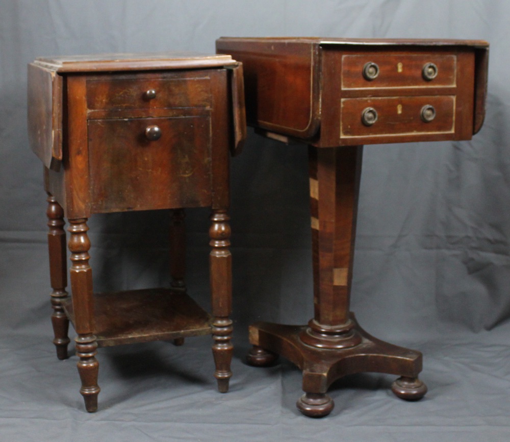 Un tavolino bandelle in noce e un tavolino con bandelle in mogano - A walnut drop leaf table and a mahogany drop leaf table