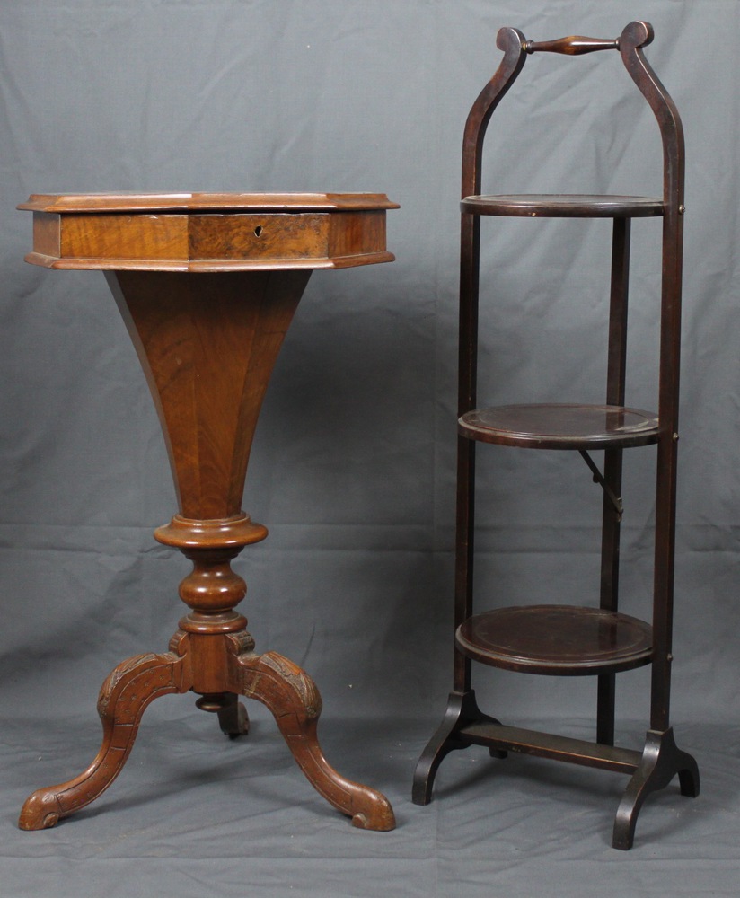Un tavolino da lavoro in noce e un servo muto in mogani - A walnut work table and a mahogany dumb waiter