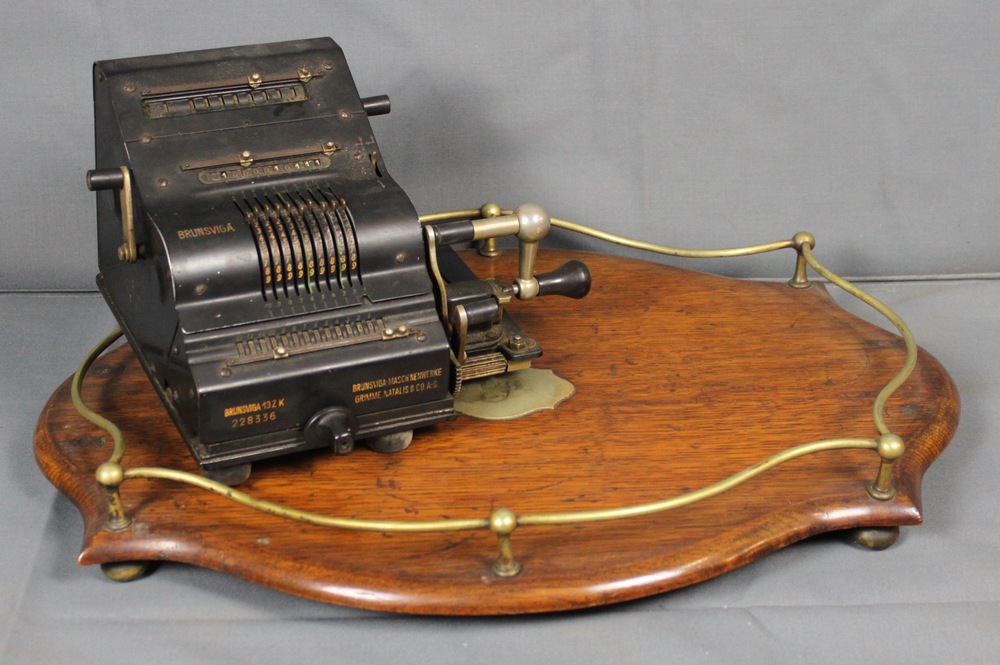 Una vecchia calcollatrice e un vassoio Scozzese in legno - An old calculator and a Scottish wooden tray