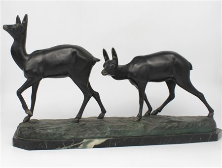 Gruppo in antimonio. Cerbiatti. firmato I. Roccirg Francia 1920 ca. 32x56x14
