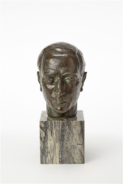 Nando Conti "Testa di uomo" Scultura a tuttotondo in fusione di bronzo, base in