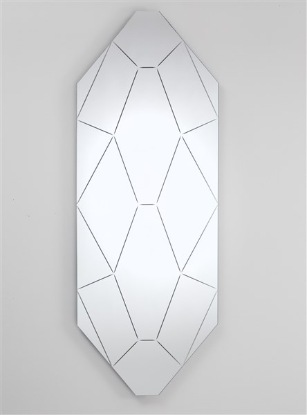Specchio modello "Brillante 4". Produzione Glas Italia, Macherio, anni '80. Cristallo sagomato con decorazioni incise. (cm 60x163) (lievi difetti)