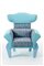 Laura Fiume Poltrona imbottita. Italia, anni '80. Gambe in legno laccato azzurro