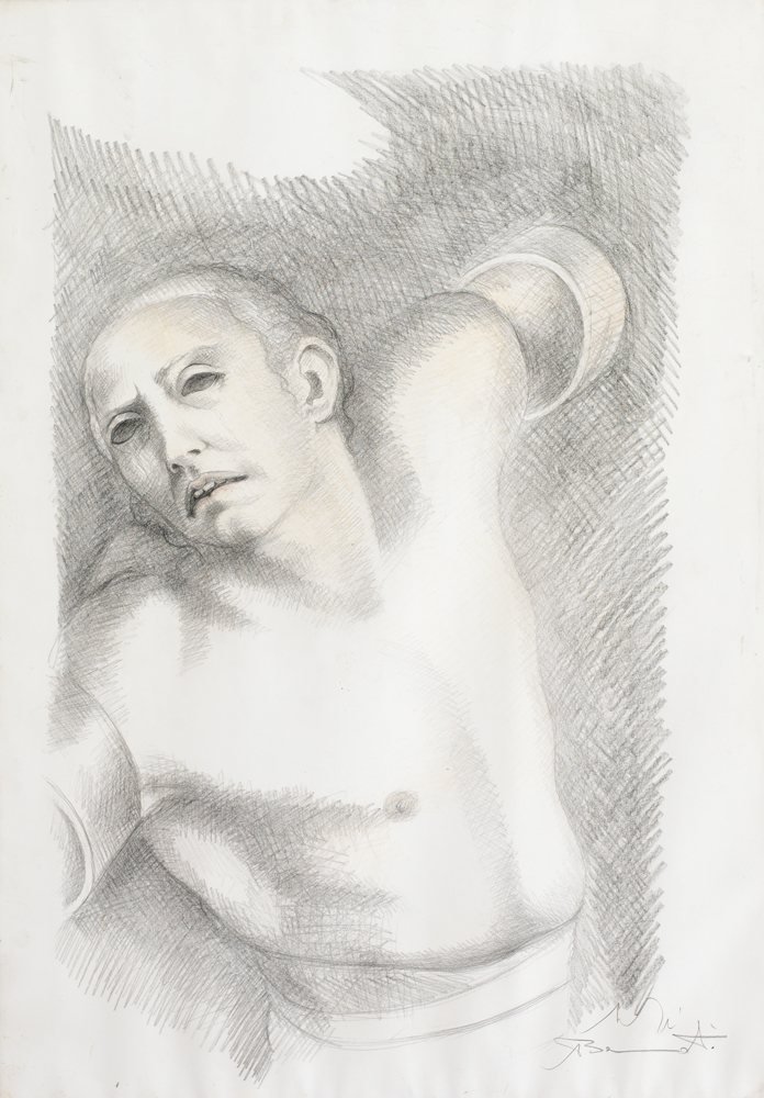 LUIGI BENNATI Milano 1929 Figura crocefissa tecnica mista su carta cm....