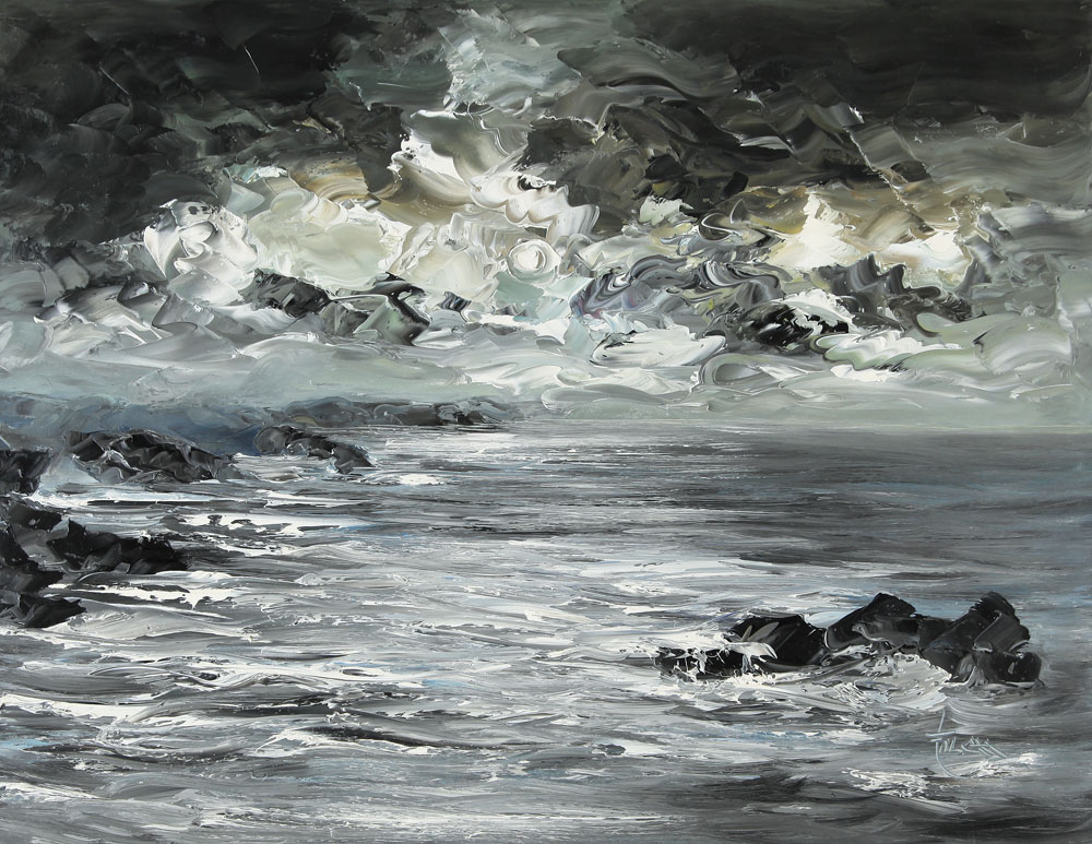 MARIO FALCHI Porto Maurizio 1950 Notturno olio su tela cm. 70x90, firma in basso a destra, titolo e firma al retro, dichiarazione d'autenticità dell'artista su foto.