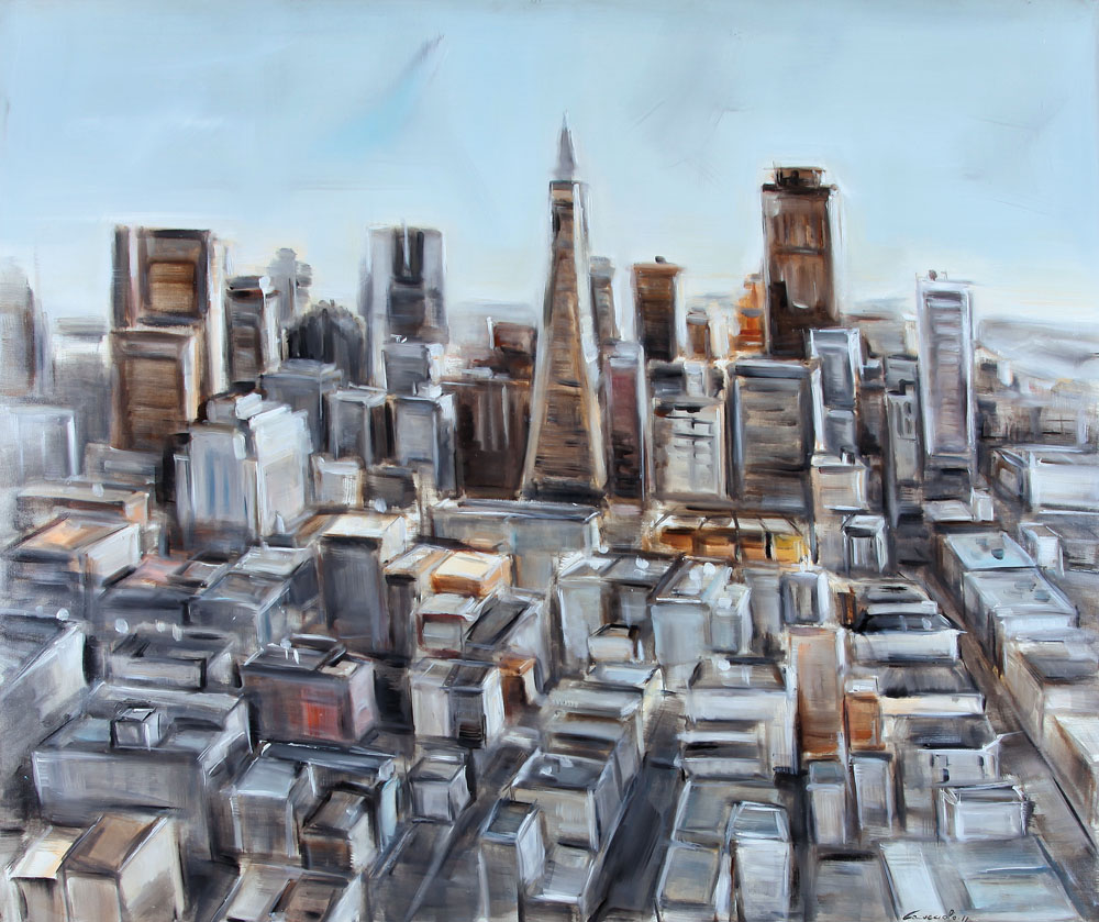LOREDANA CACUCCIOLO Bari 15/12/1968 Landscapes n° 6, 2011 olio su tela cm. 100x120, firma in basso a destra, firma, titolo, anno e tecnica al retro, dichiarazione d'autenticità dell'artista su foto, pubblicato sul depliant dell'esposizione "Loredana Cacucciolo D.O.V.E., dietro ogni vivida espressione", opera priva di cornice.