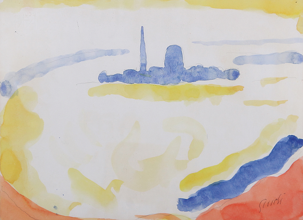 VIRGILIO GUIDI Roma 04/04/1891 - Venezia 07/01/1984 Bacino di San Marco acquerello su carta cm. 24x32, firma in basso a destra, firma di Gianni De Marco ed etichetta della Arte Fiera di Bologna su foto, già asta Meeting Art del Gennaio 1997.