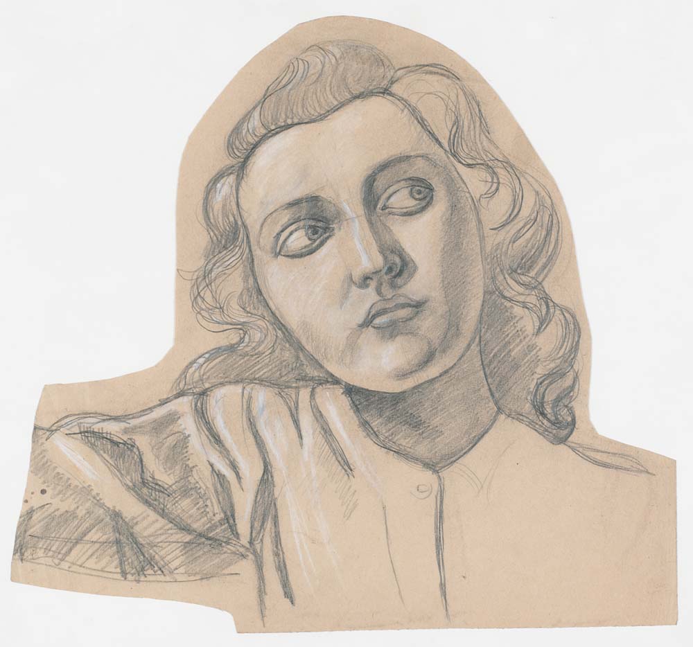 LUIGI RUSSOLO Portogruaro (Ve) 30/04/1885 - Cerro Di Laveno (Va) 04/02/1947 Ritratto di fanciulla, prima metà anni '40 matita e biacca su carta cm. 33,3x36, opera non firmata, registrata presso l'Archivio Generale Luigi Russolo al numero 40 a cura degli Eredi Russolo come da dichiarazione su foto.